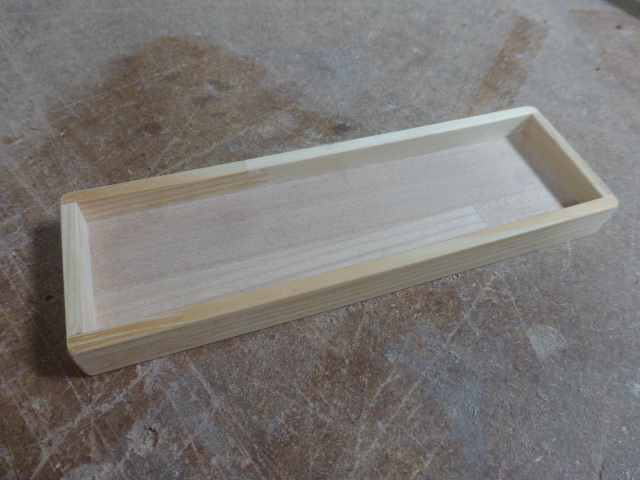 作製系の作業では、共通の物として小箱を作るほかに、自分で何を作るかを決める課題がありました。私は、小型のペン置きを作りました。普通のペンなら3、4本ぐらい入ります。